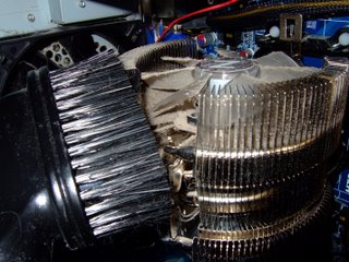 Notice the black fan in back? That is attached to the back side of the case in this computer. It too has a coating of dust that makes the fan motor work extra hard.