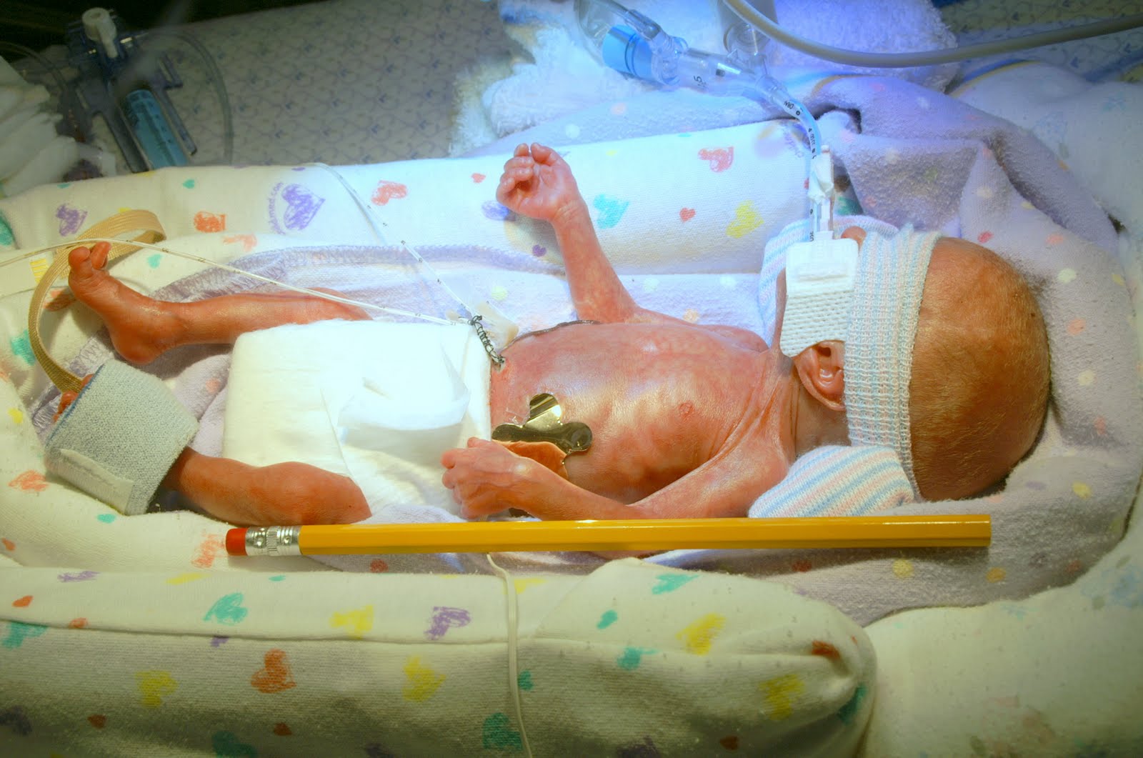 One and a half weeks ago, our new grand-niece Gracie Lou was born. She was three months early, but she had stopped growing, and the pregnancy was putting both her and her mother at great risk. So she arrived by emergency C-section on April 16, weighing just under a pound, not much longer than a new pencil.