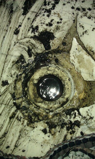 Then I went into the laundry room. Ewwwwwwww!!!!!!!! Black sludge covered the floor, oozed across the door jamb, and burbled into the hallway. The throw rug was a slightly crumpled tarry blob in the middle of it all. More slimy goo was welling up through the floor drain.