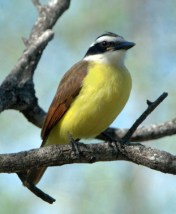 Texas birds, from top: Green Jay, Pyrrhuloxia, Great Kiskadee, Black-vented Oriole, Ringed Kingfisher.
